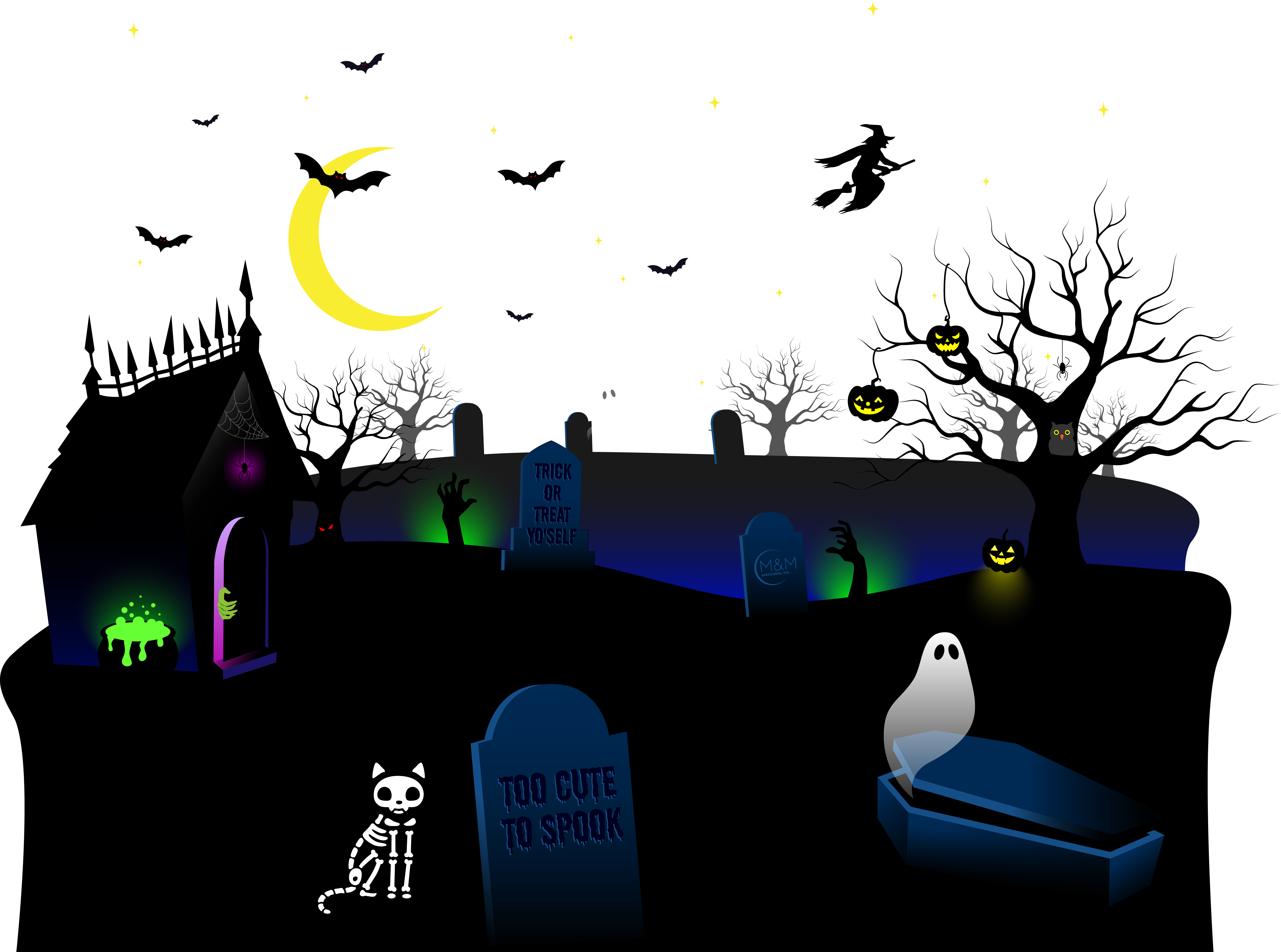 Tap or roll over the haunted cemetery below to reveal what’s hidden in the shadows.